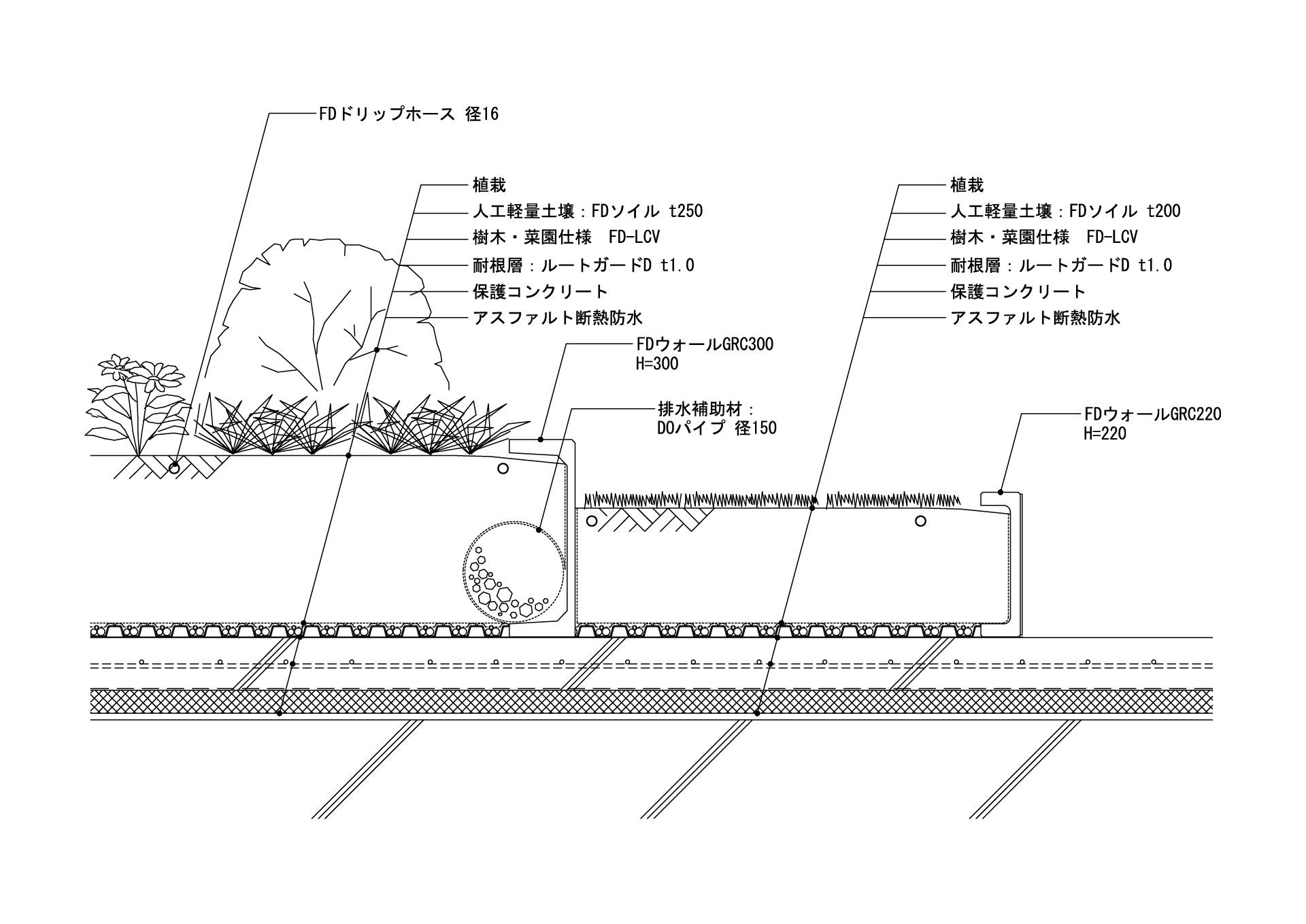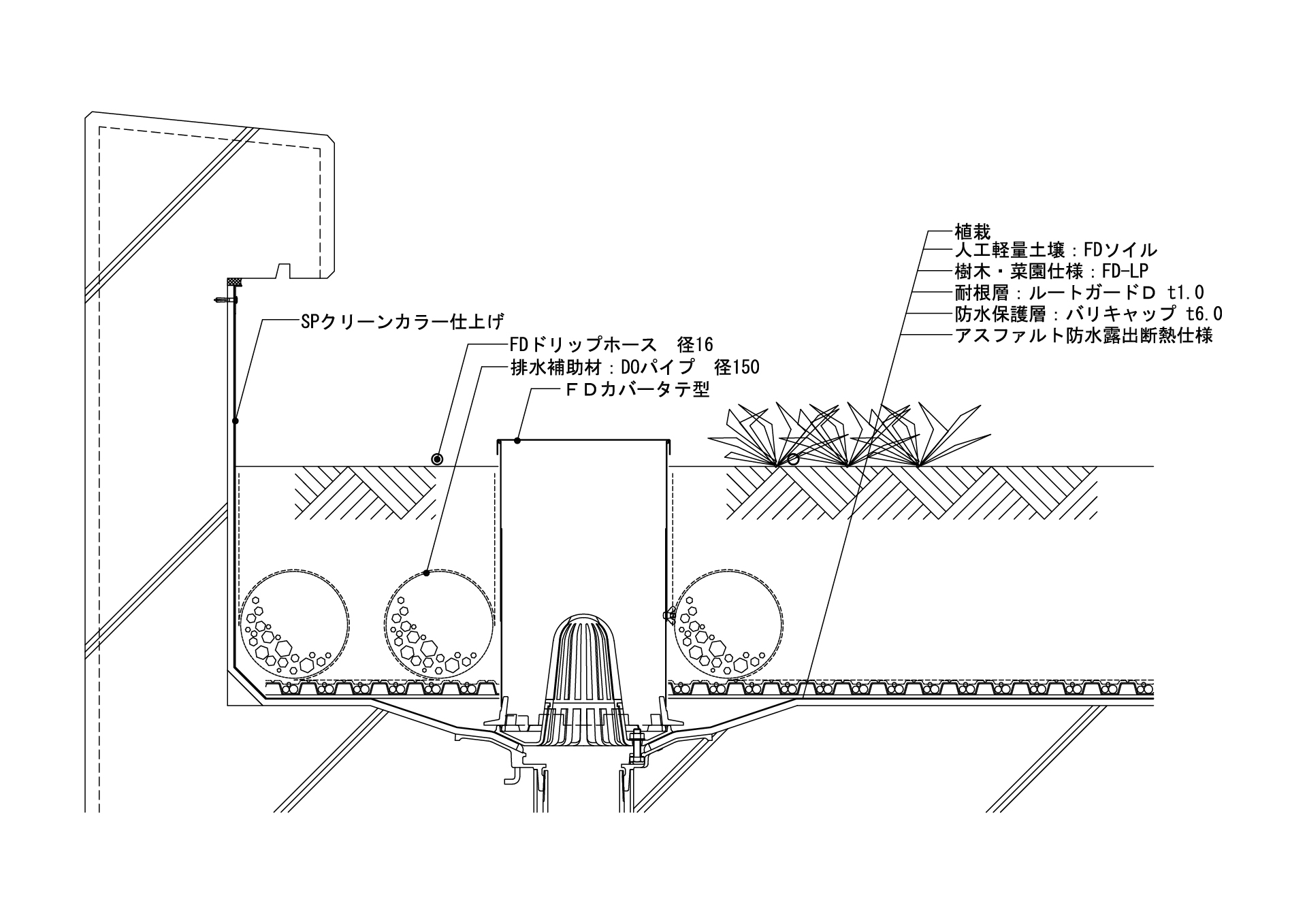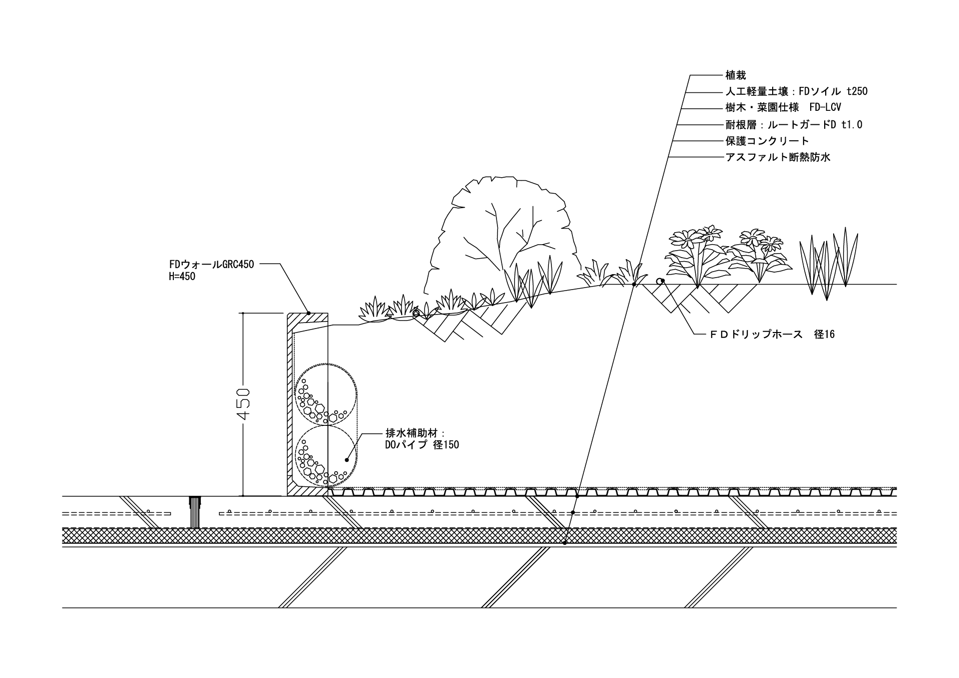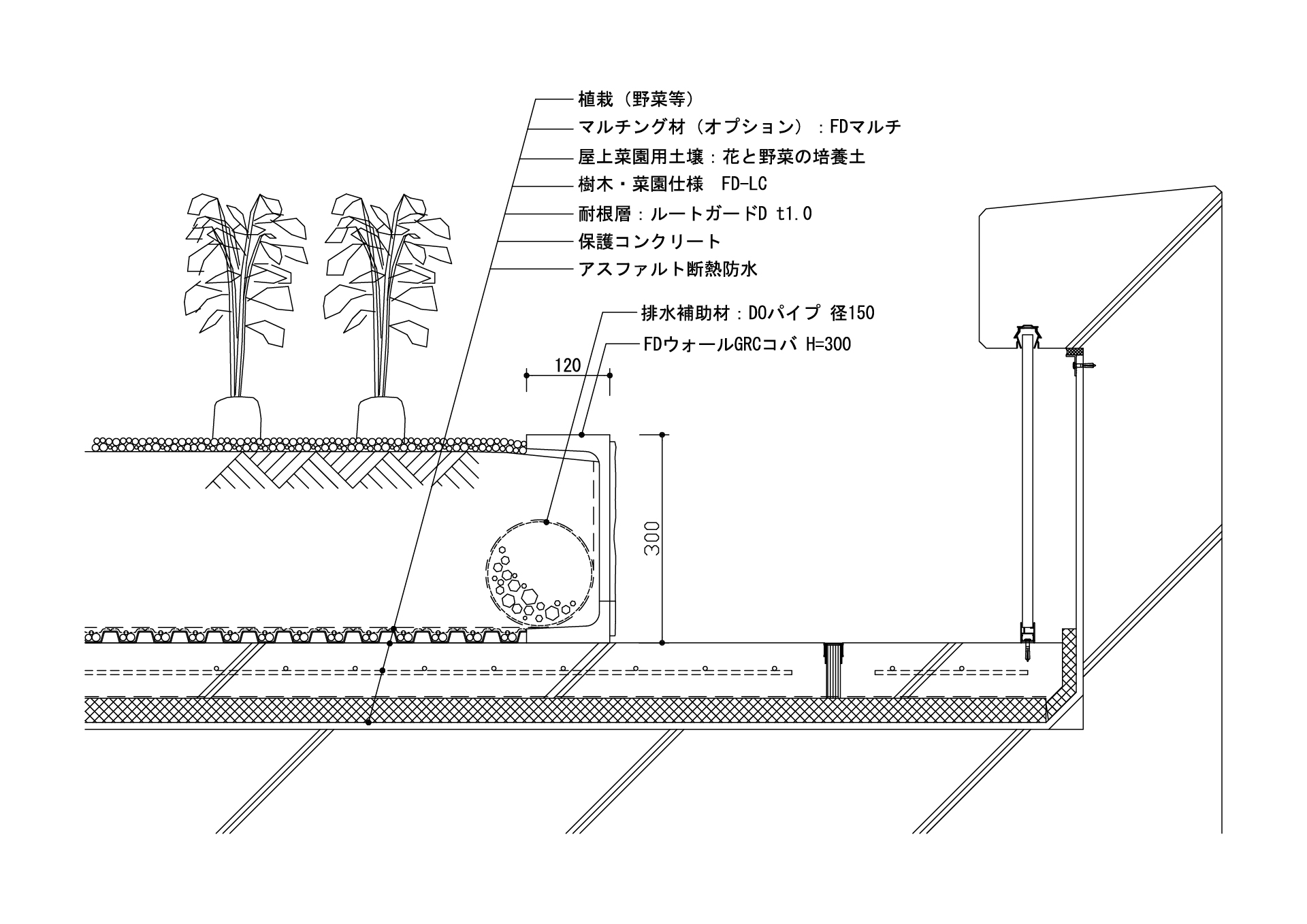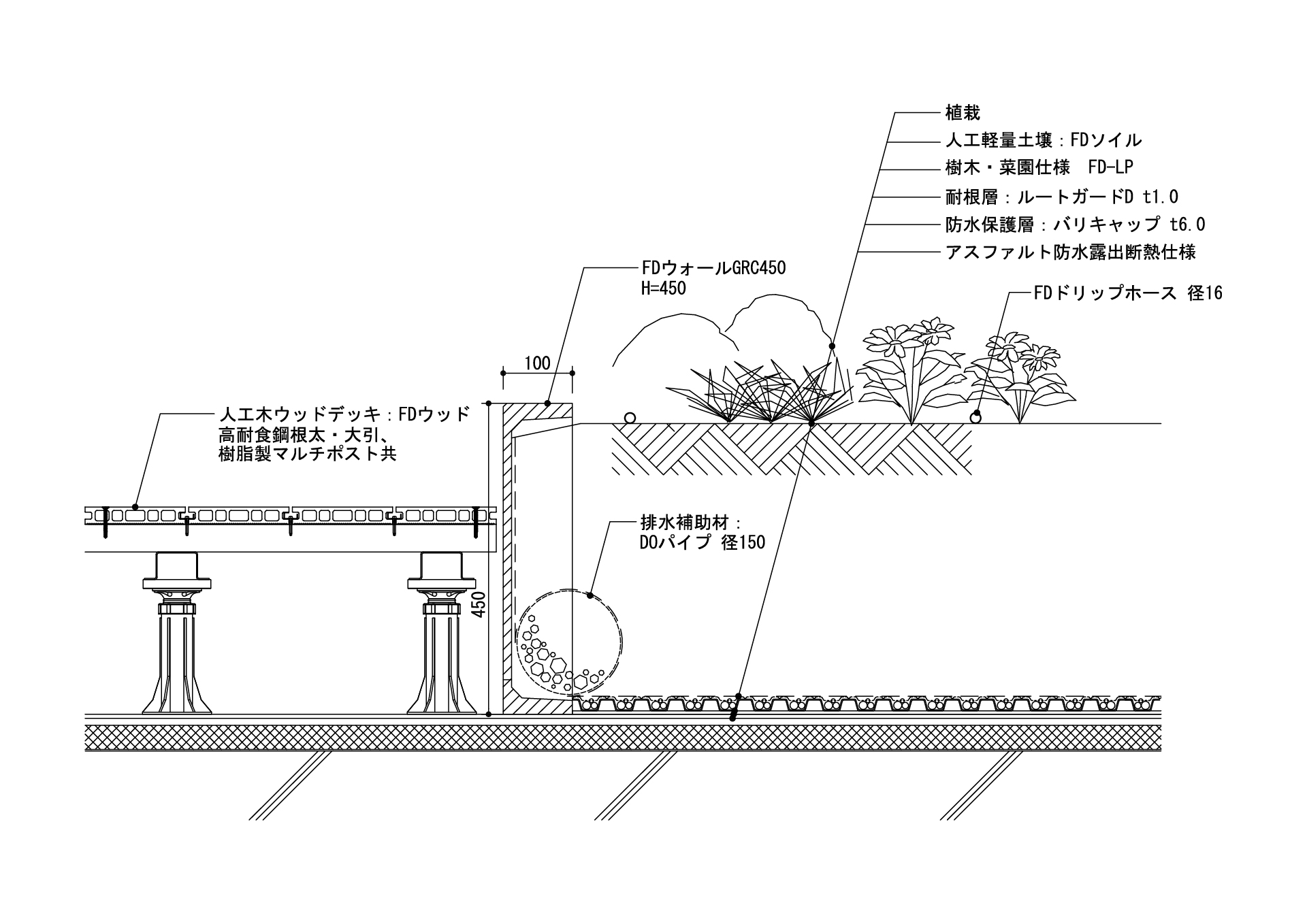 樹木・菜園仕様 FD-LP (露出アス/全面緑化納まり図)