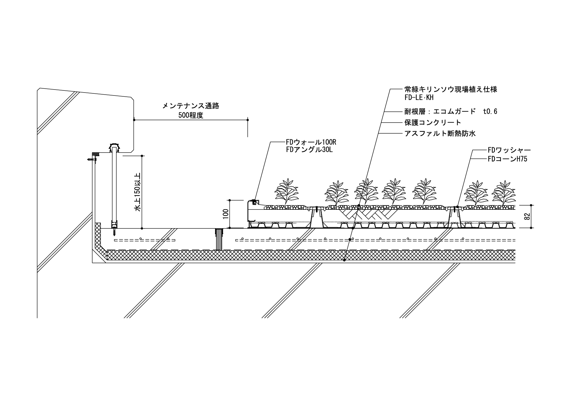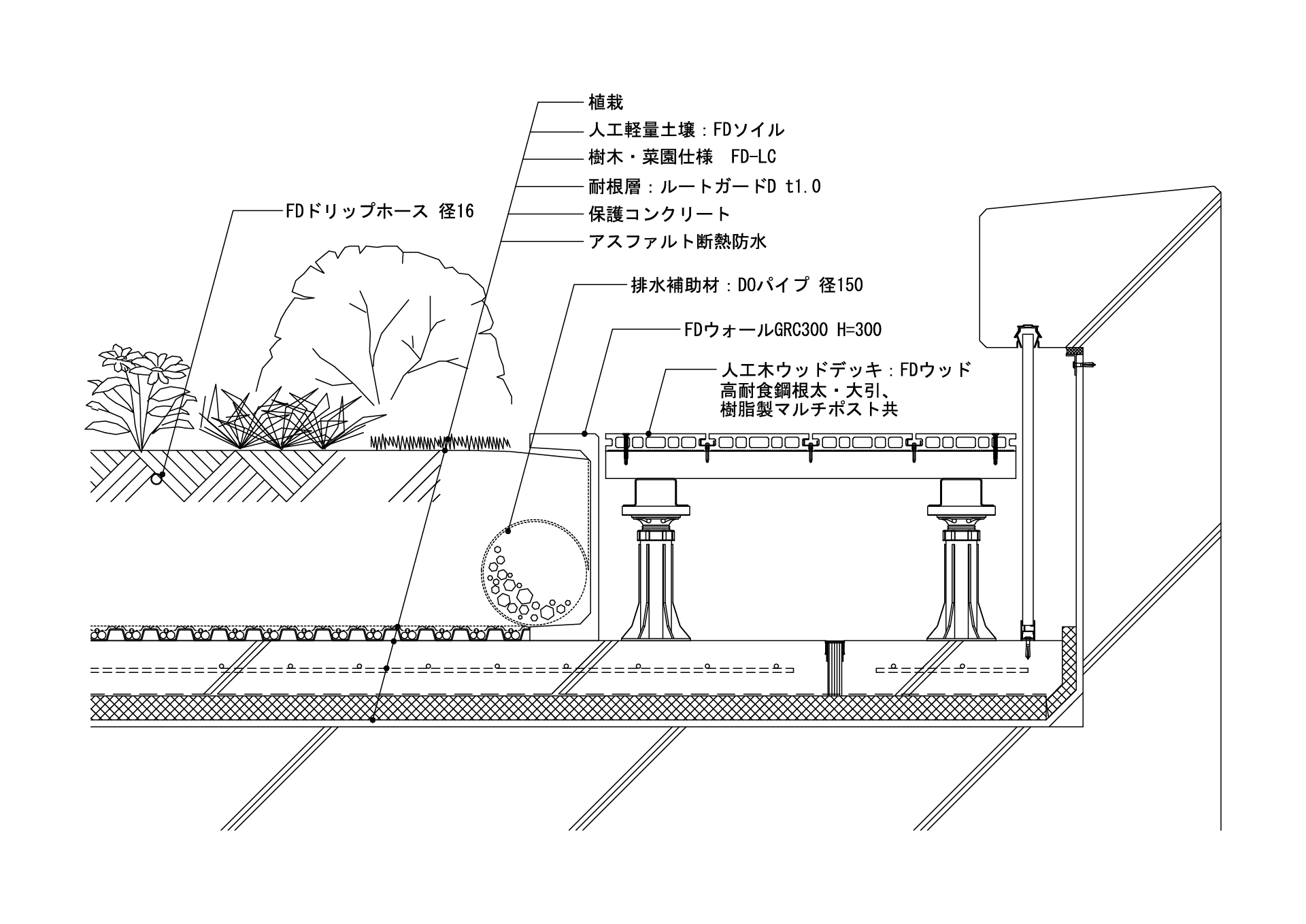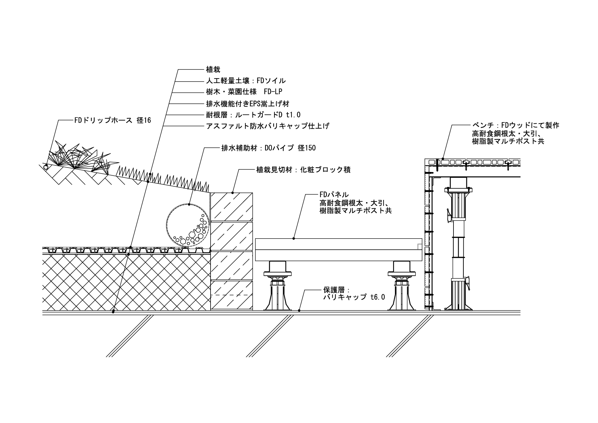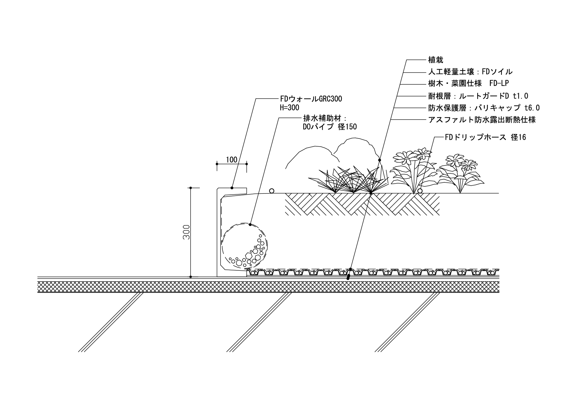 樹木・菜園仕様 FD-LP (露出アス/全面緑化納まり図)