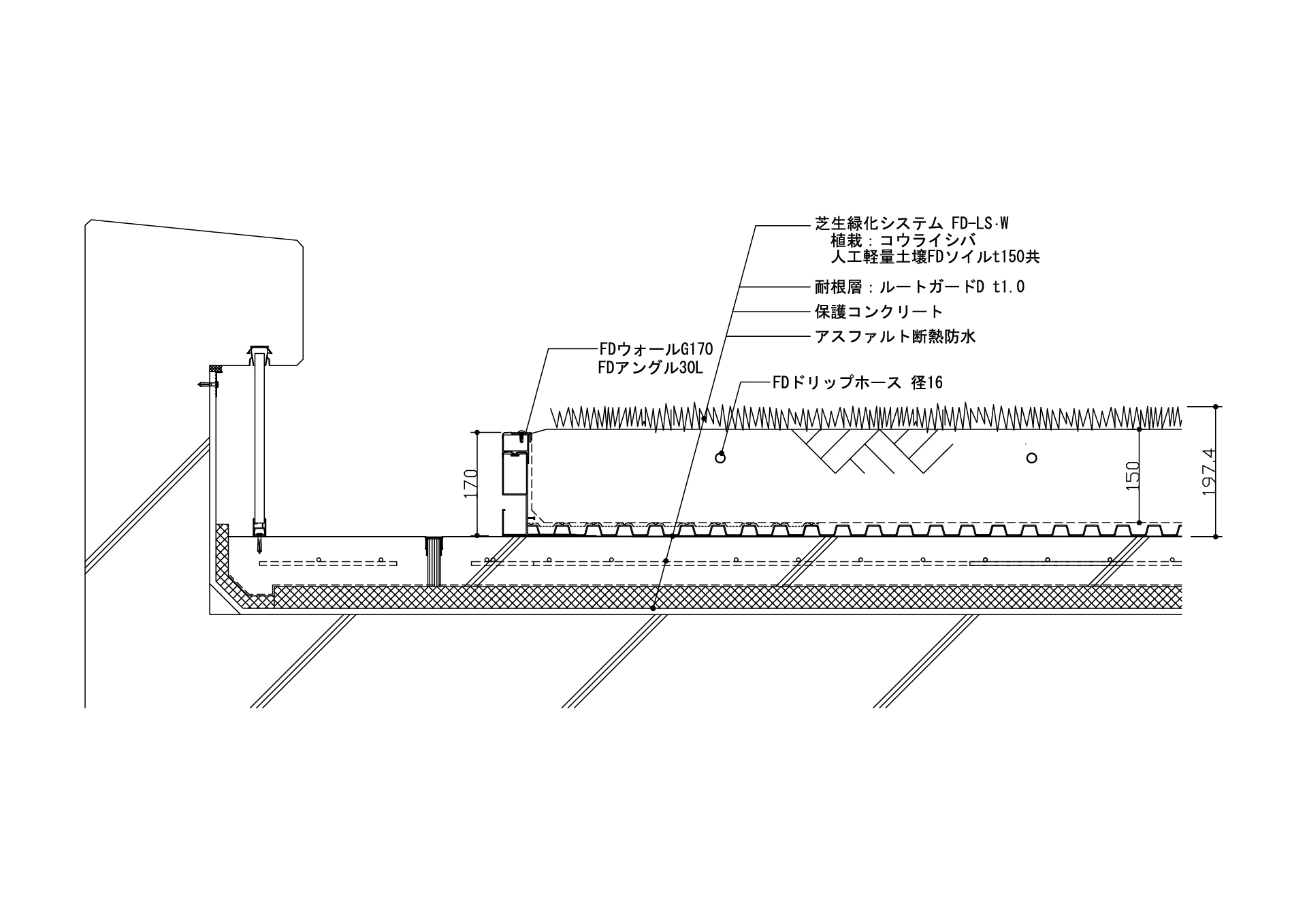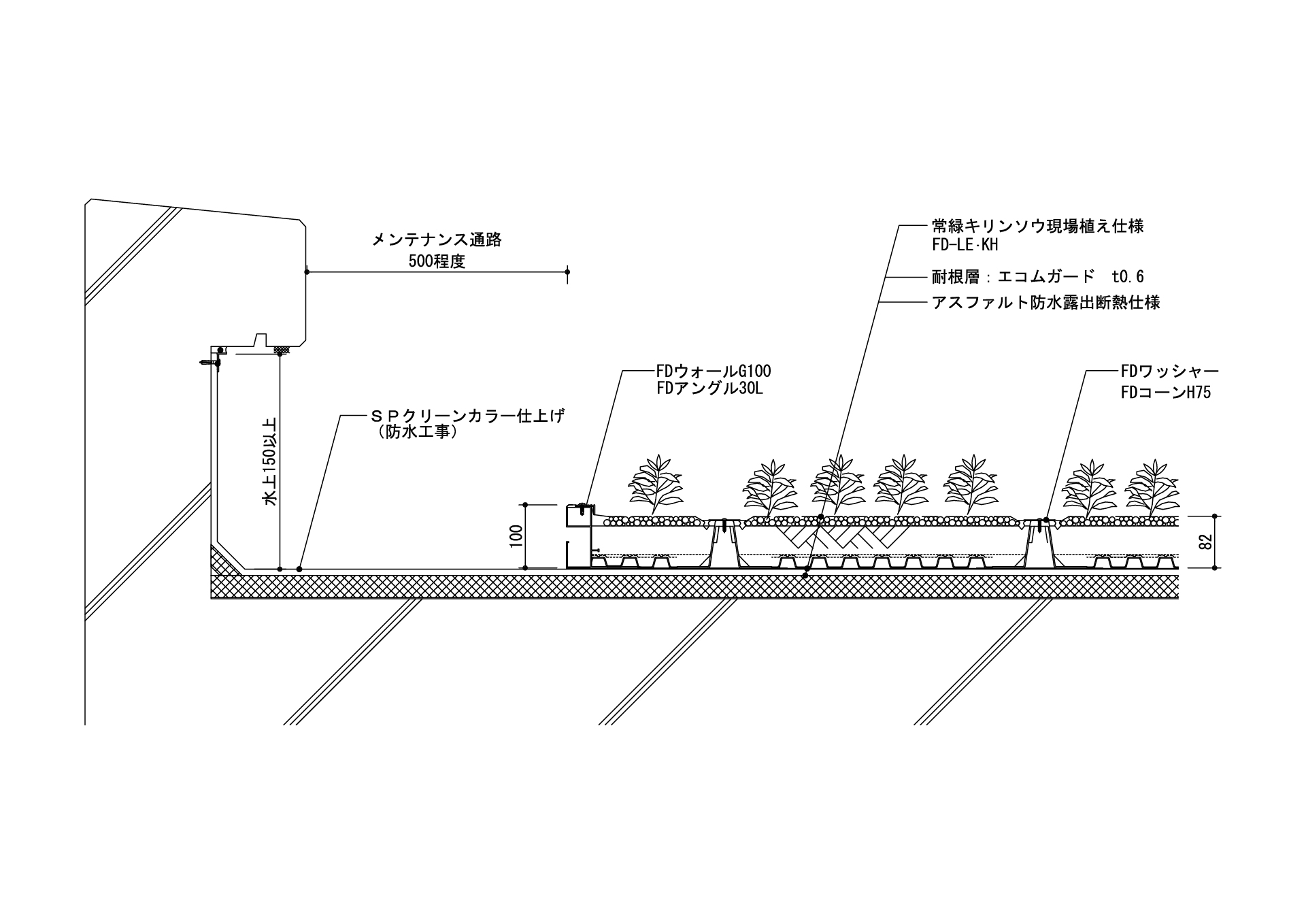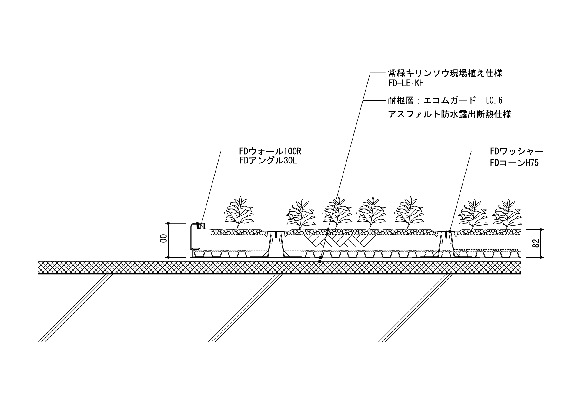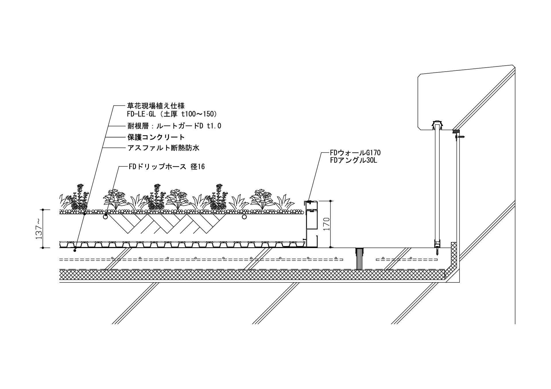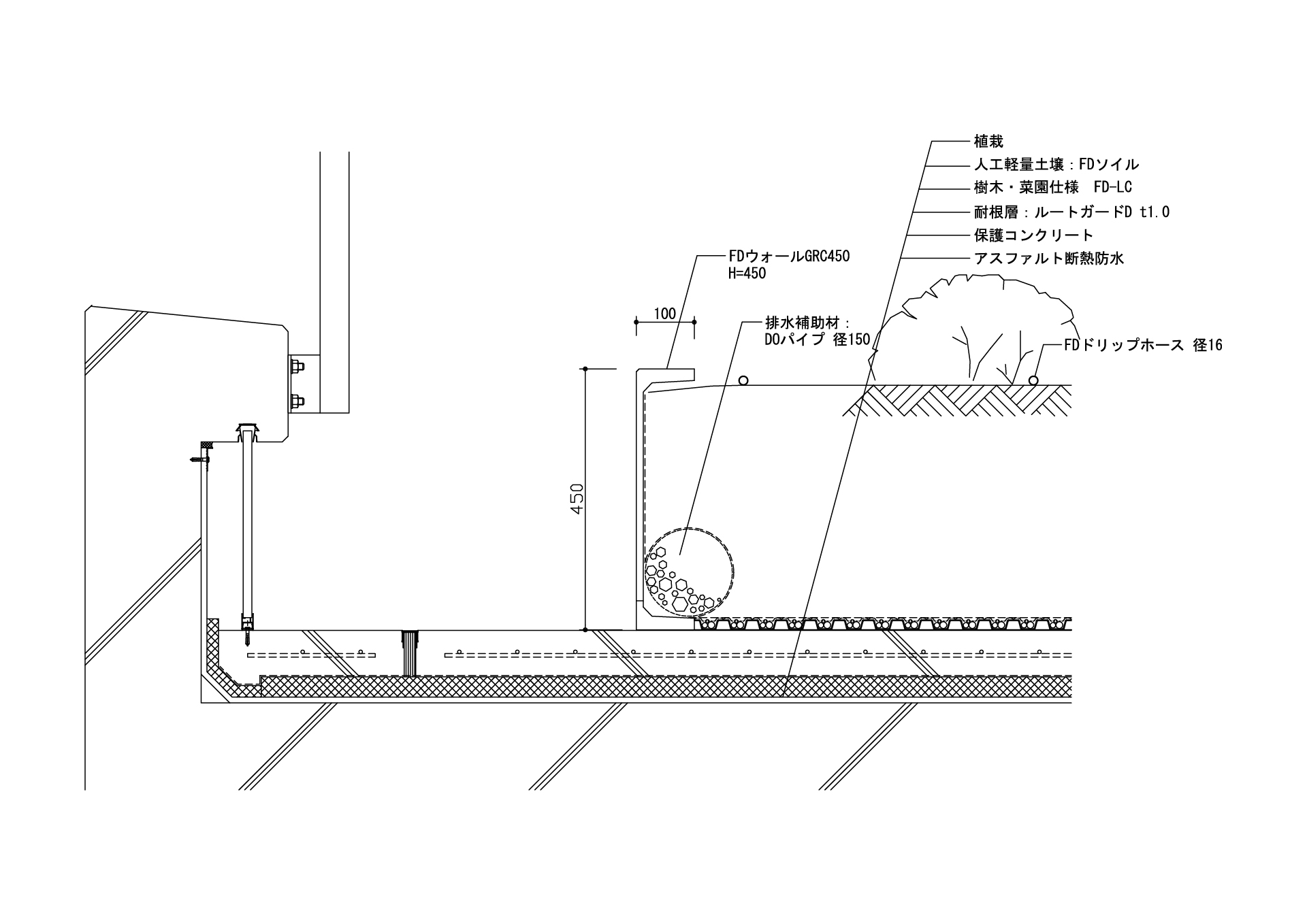 樹木・菜園仕様 FD-LP (露出アス/全面緑化納まり図)