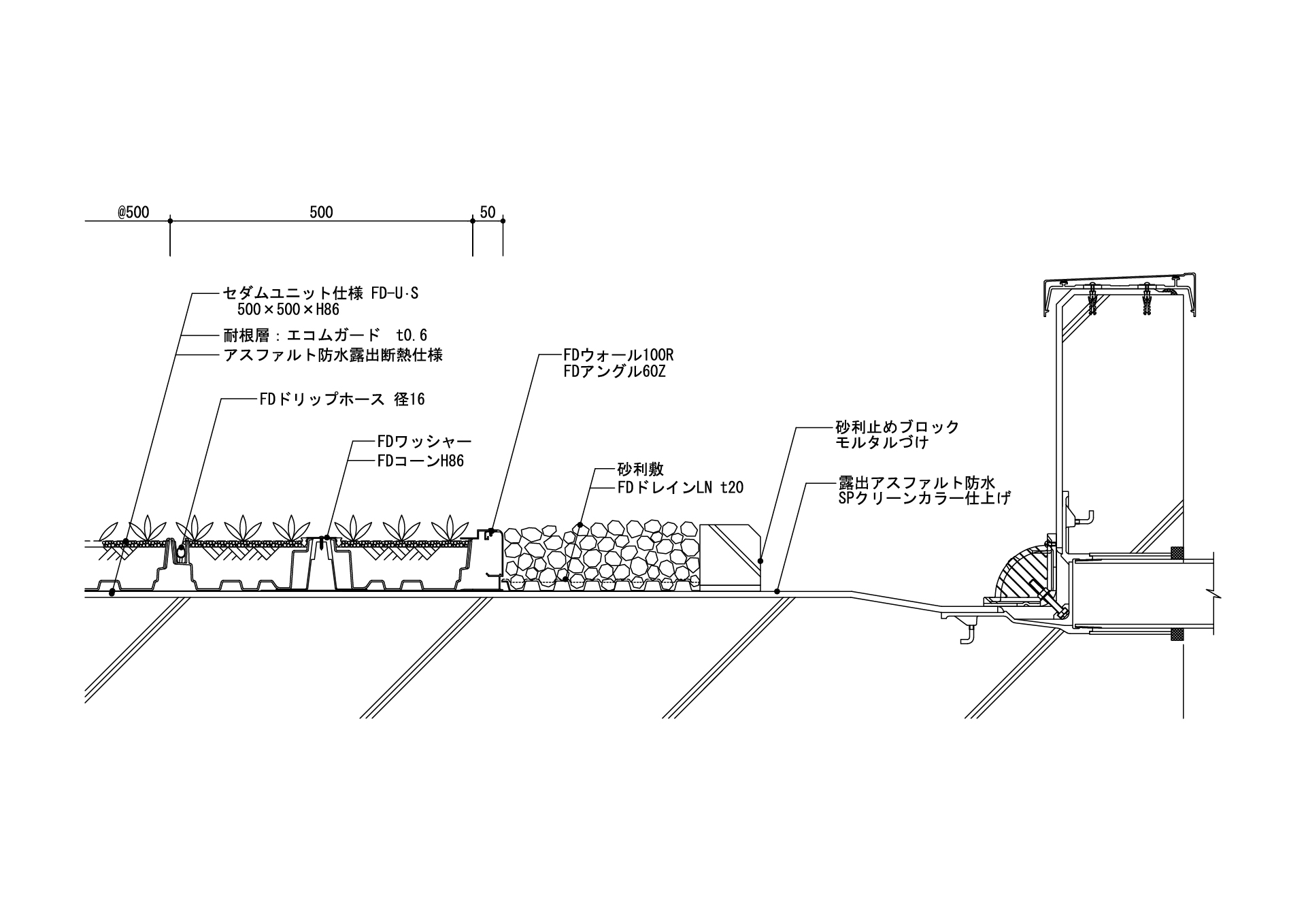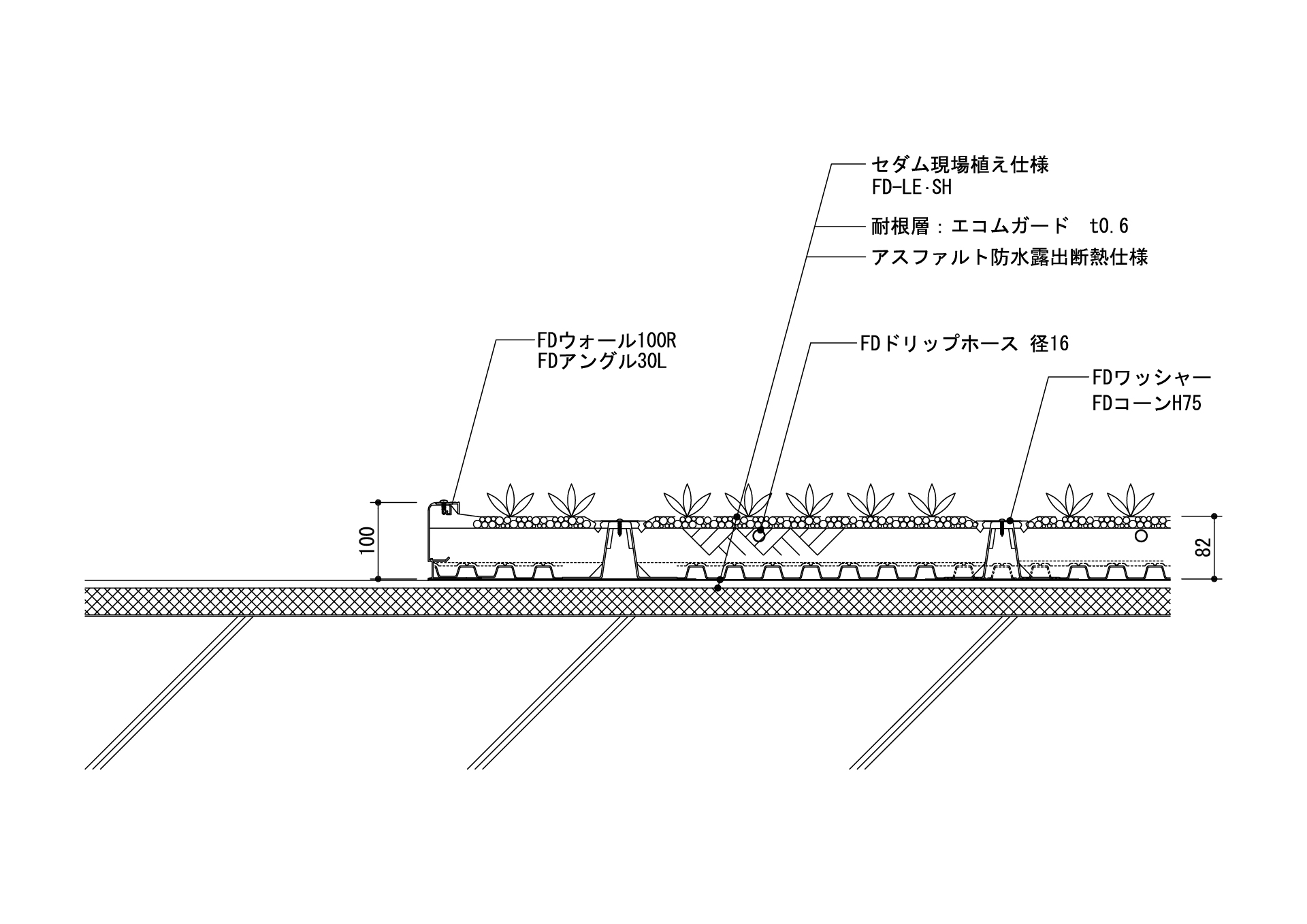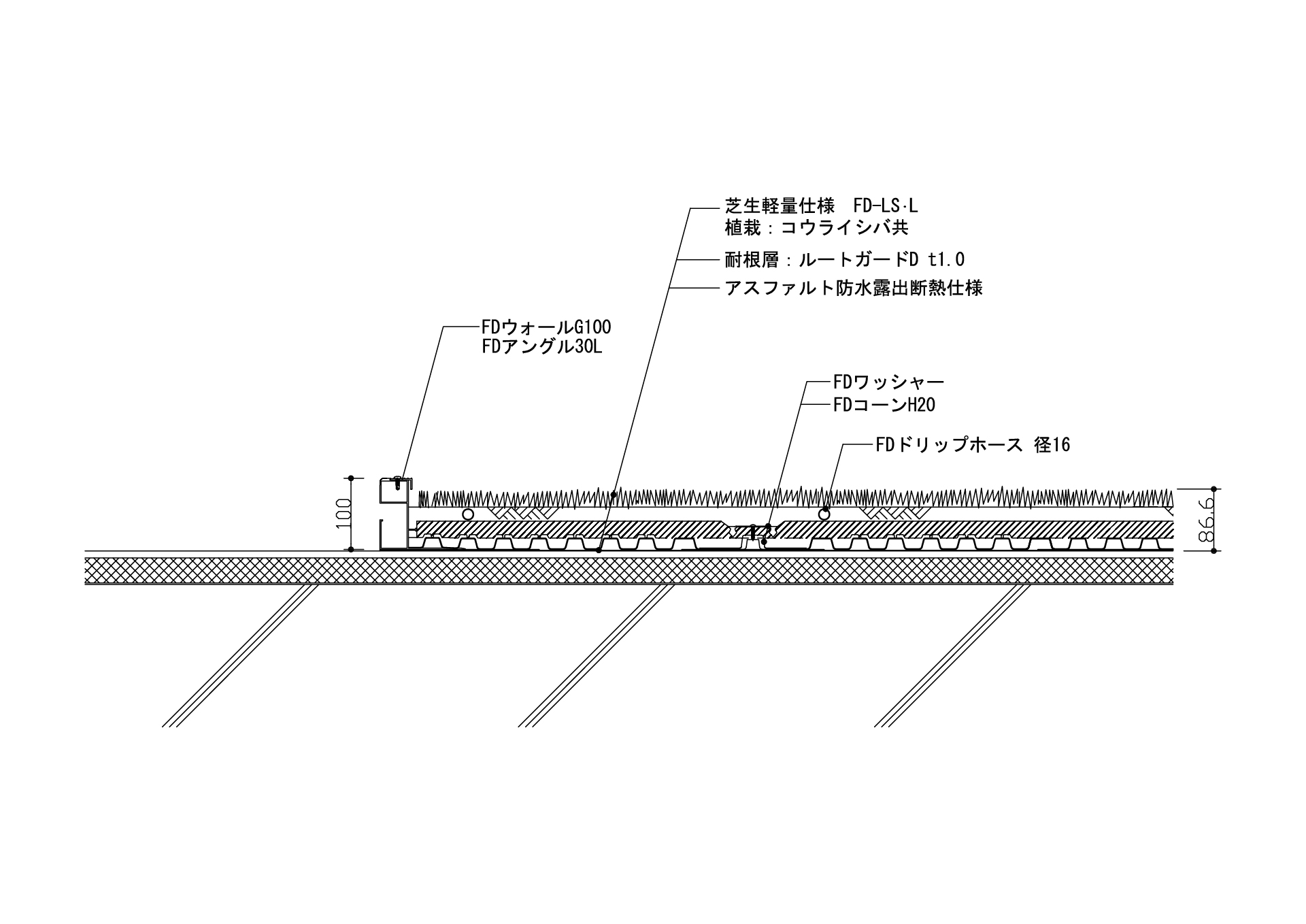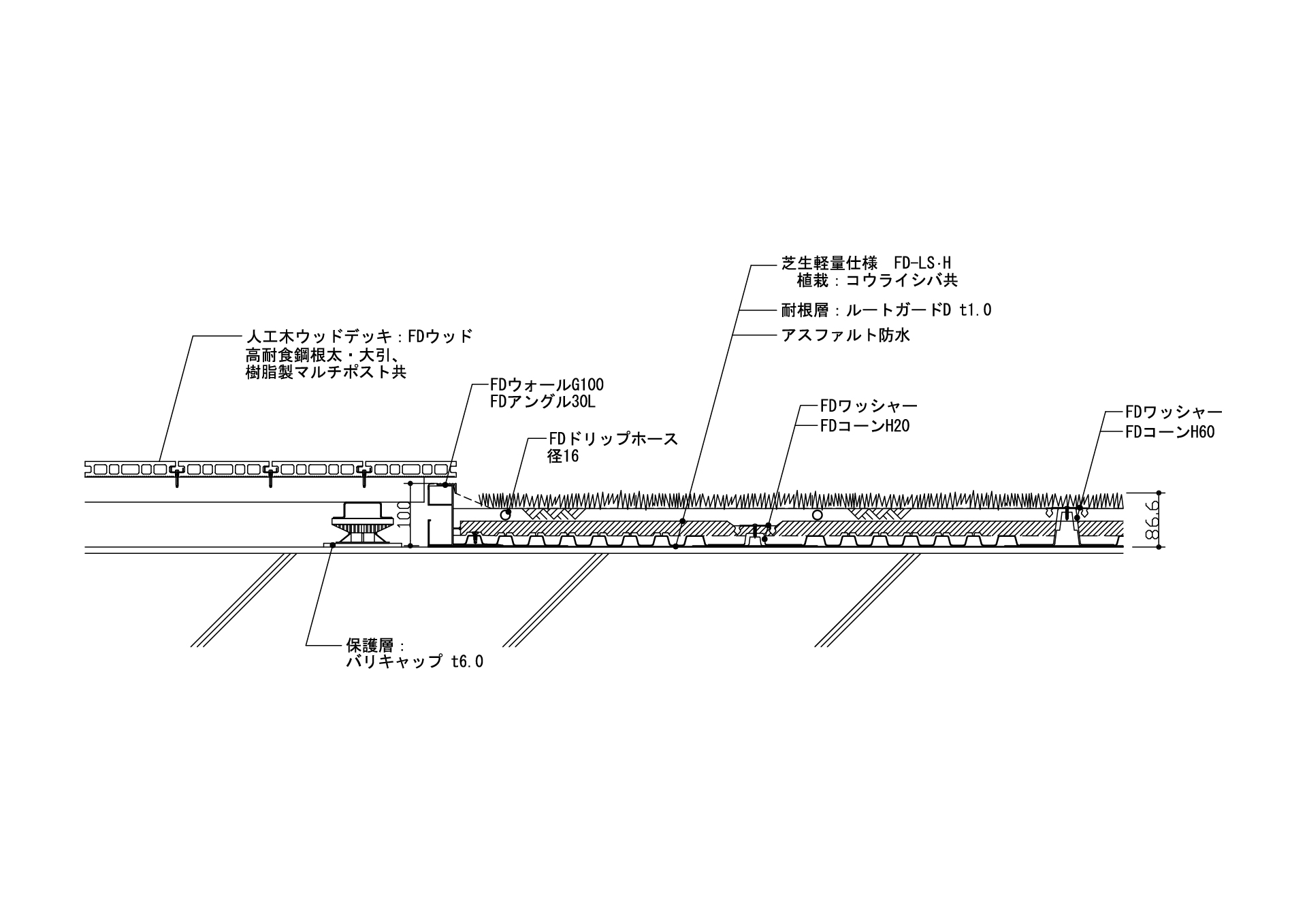 樹木・菜園仕様 FD-LP (露出アス/全面緑化納まり図)