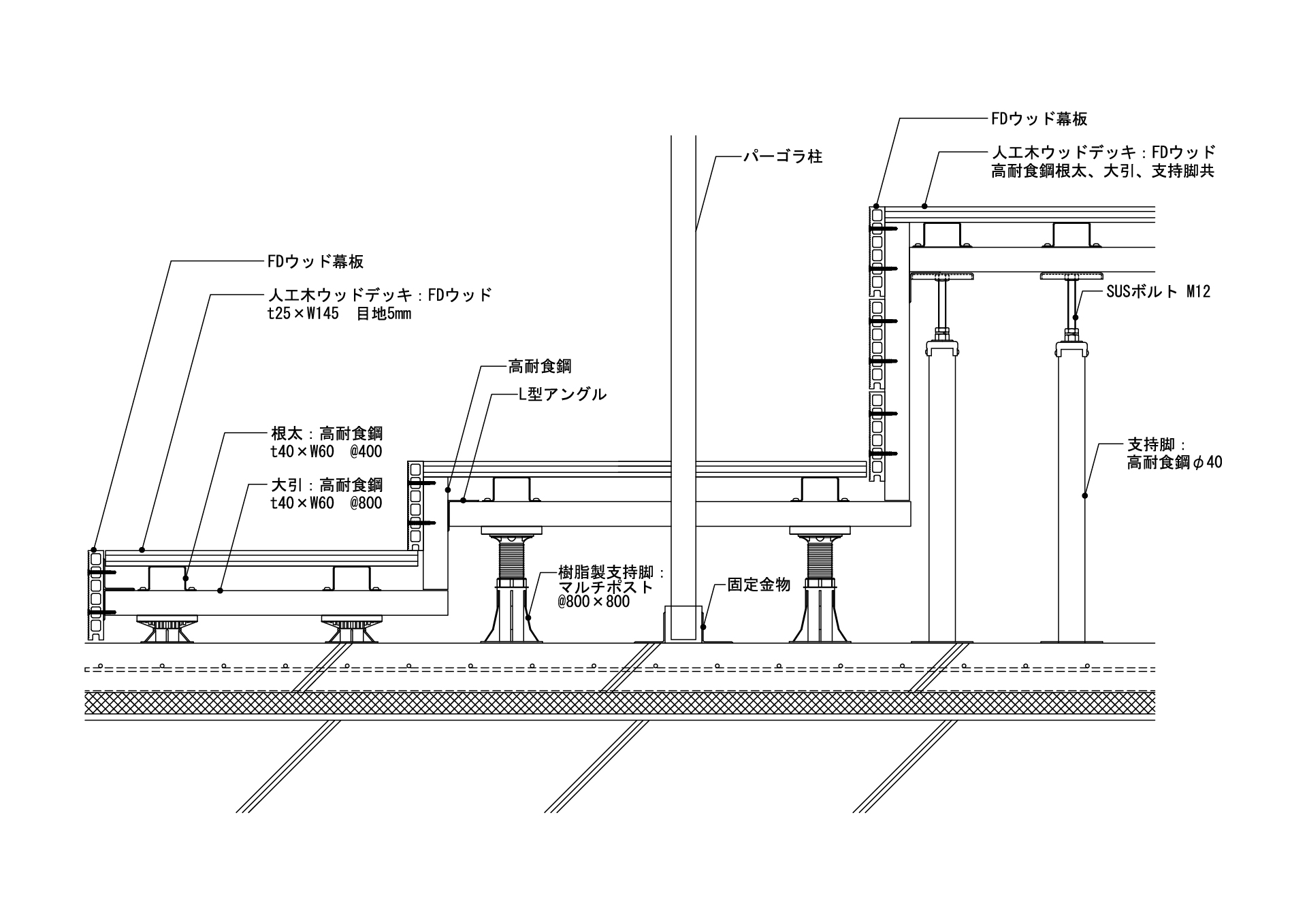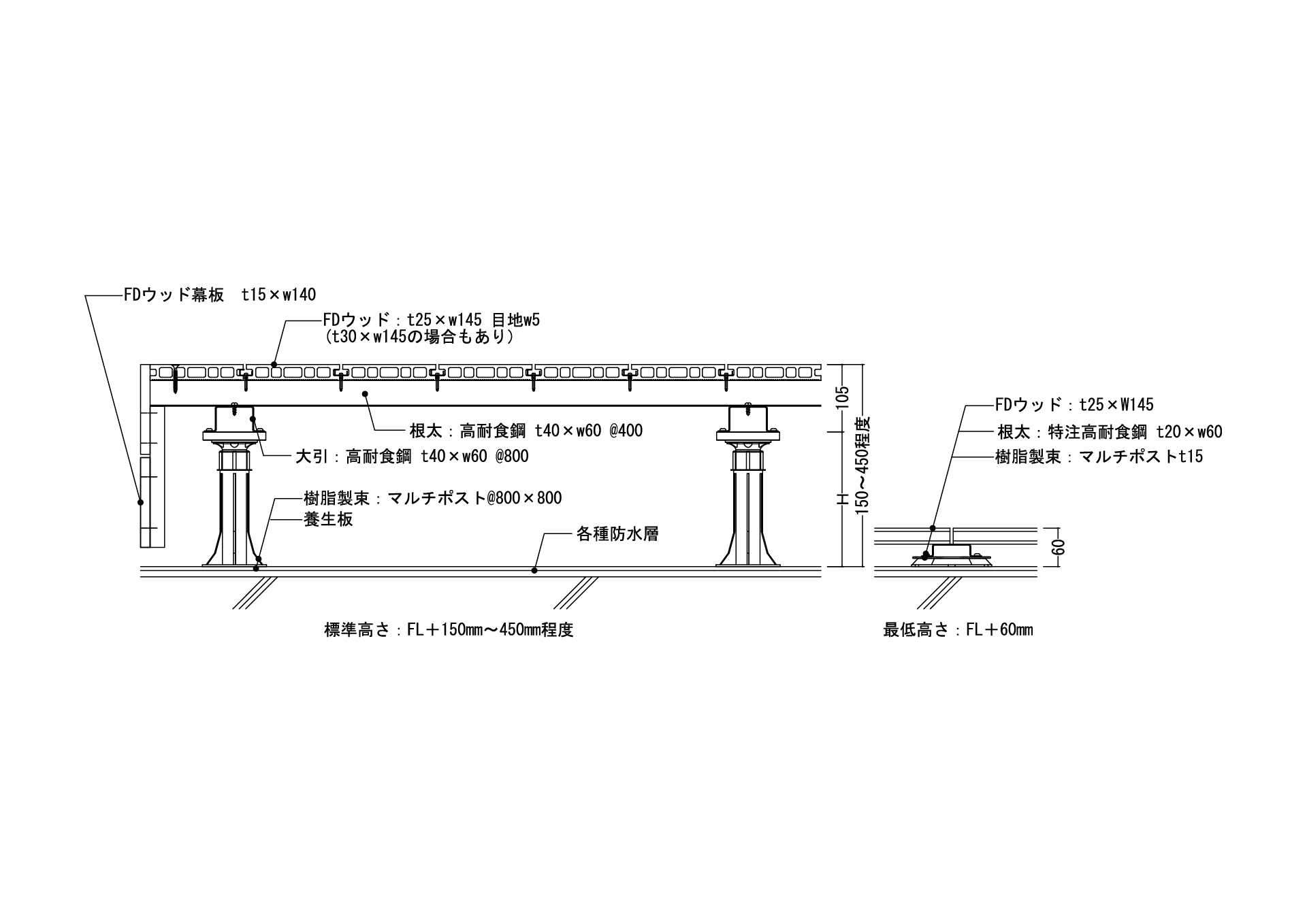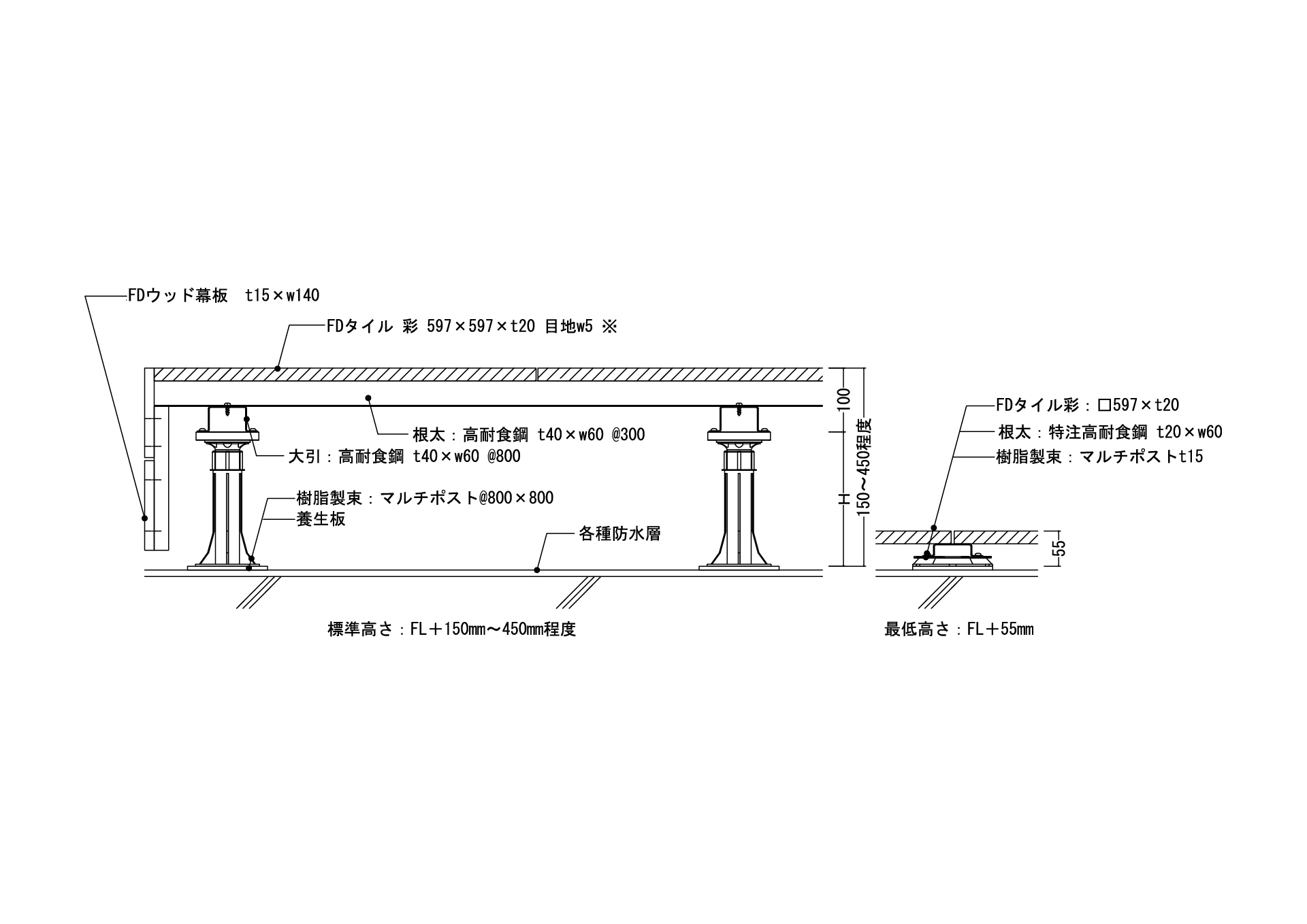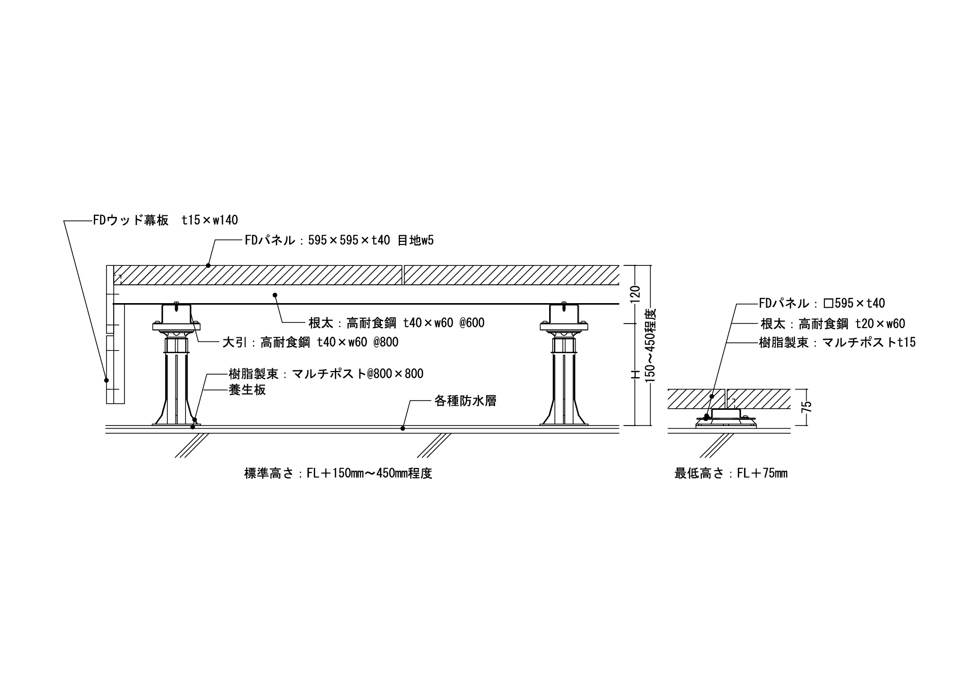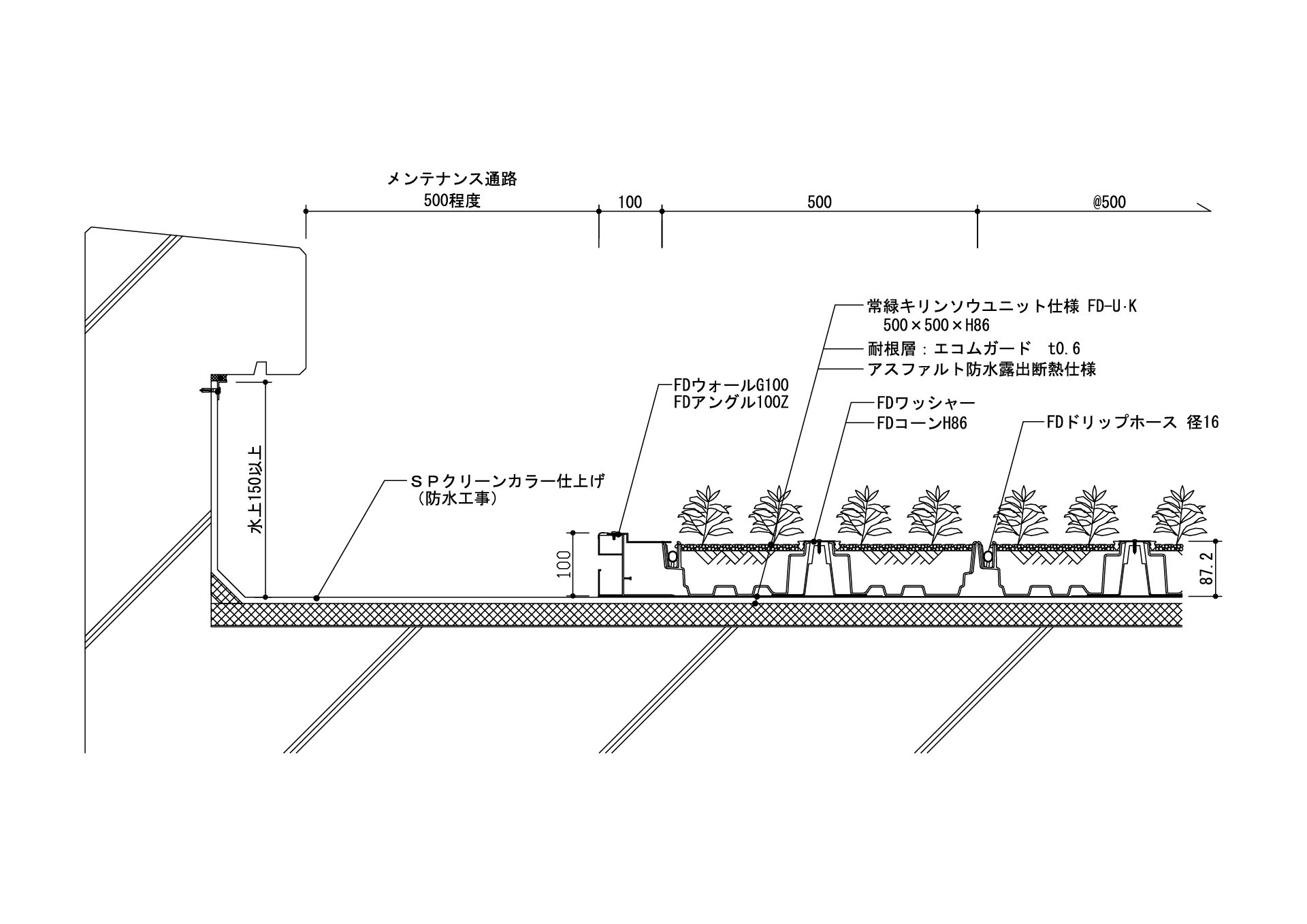 樹木・菜園仕様 FD-LP (露出アス/全面緑化納まり図)