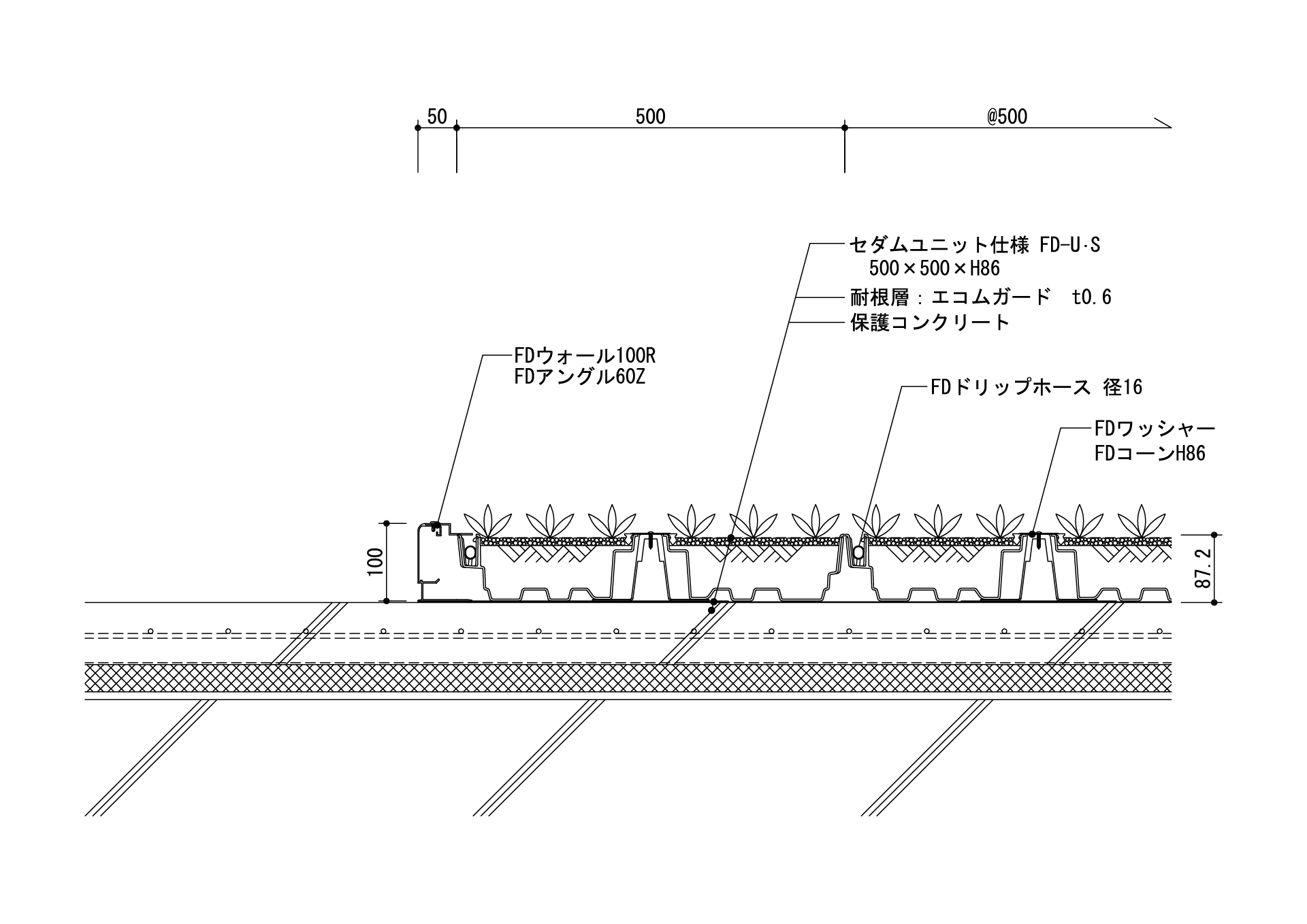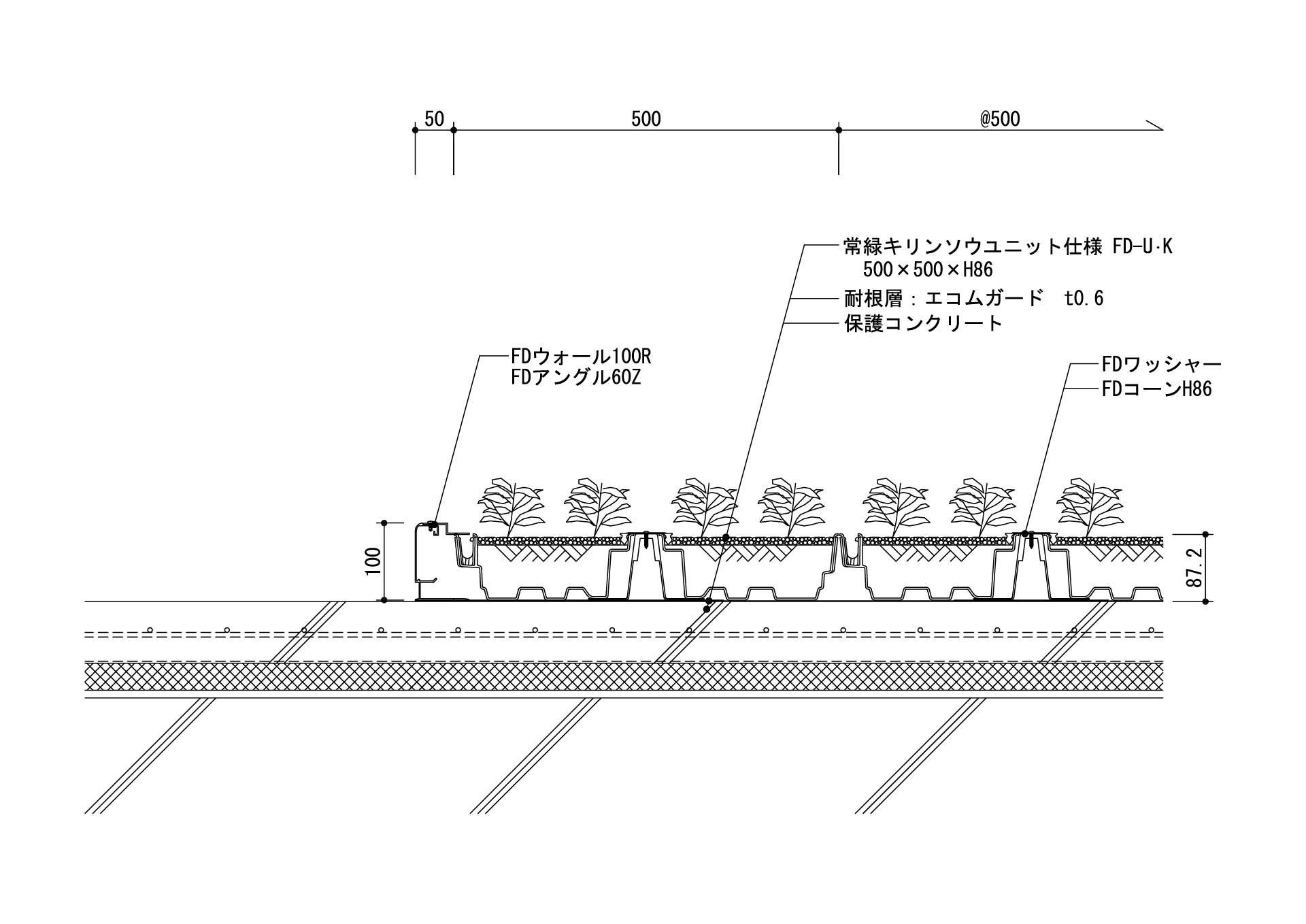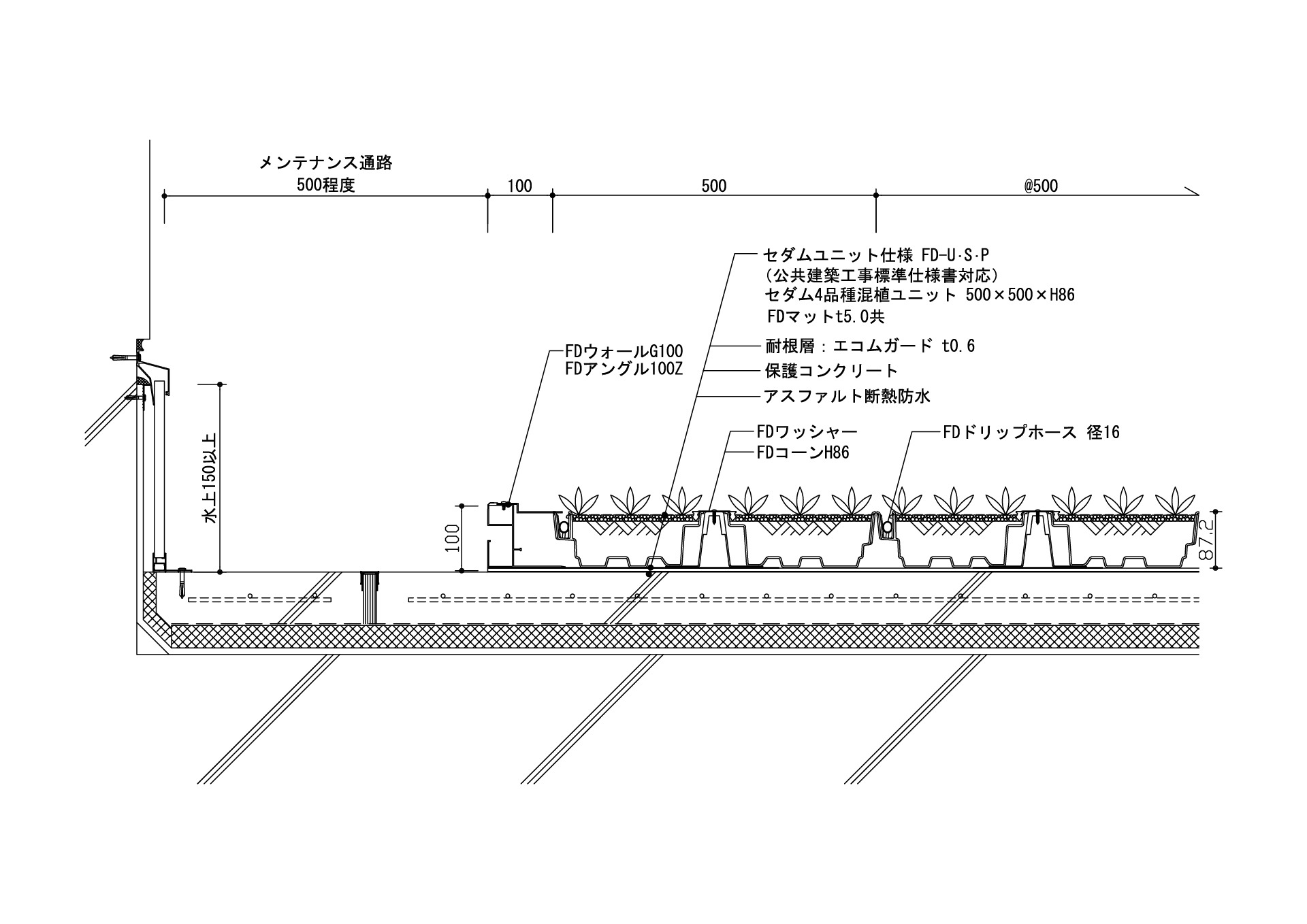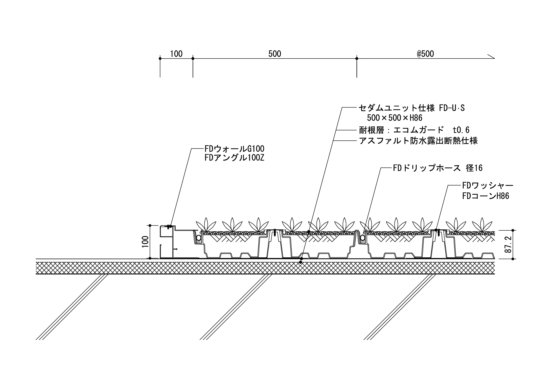 現場植え工法 常緑キリンソウ仕様 FD-LE・KH (露出アス/G100)