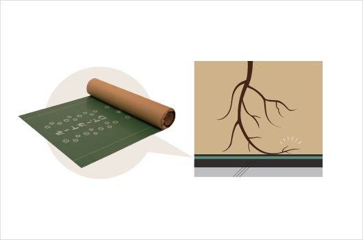 ルートガードDは、寸法安定性に優れ、長期的に根の侵入を防止する耐根シートです。耐水性にも優れており、土中の水分による変形や変質がありません。植物の根に対する高い抵抗性を備えながら、経年後も安定した効果を期待できるシートです。