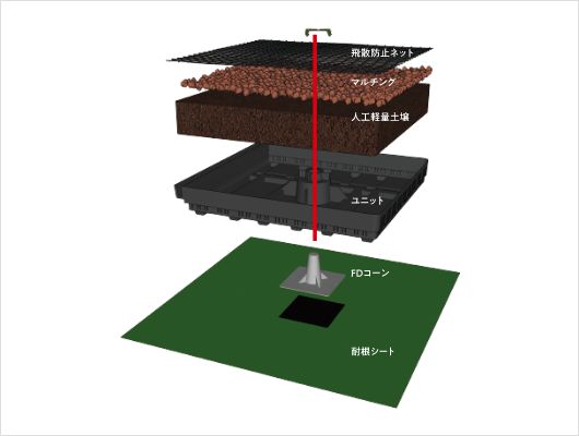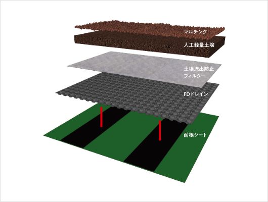 - 植栽基盤の軽量化、薄層化に大きく貢献