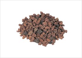 土壌表面を覆うことで、土壌やセダム類の飛散を防止するマルチング用火山砂利。落ち着いた赤色で、意匠性を高める効果を持つ。