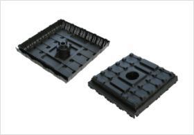 保水、排水、通気の機能を一体化したリサイクルポリスチレン製成型パネル。凹部で植栽に必要な水分を充分に保水し、裏面の空間は排水暗渠として余剰水を速やかに排水するほか、上部に新鮮な空気を送る。