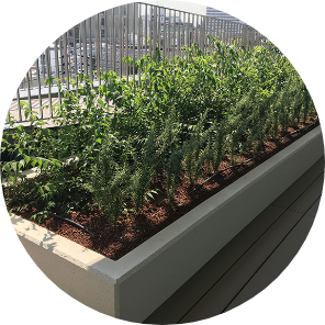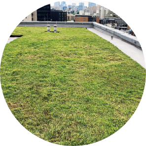 屋上緑化は、ヒートアイランド現象の緩和やCO2の削減など都市の環境改善効果だけでなく、建築物の保護や人間の心理面に与える癒しなど様々な効果を期待して導入されることが多いです。