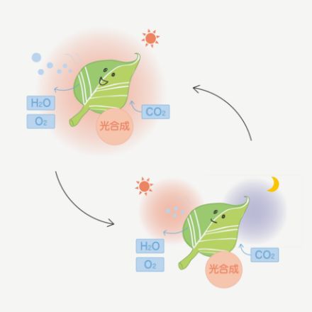 昼間に気孔を開いて、CO2を取り入れ、光合成を行う。