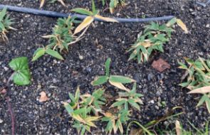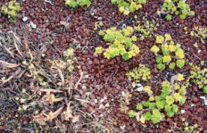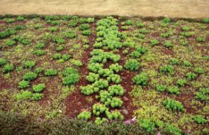 日本の夏は高温多湿。セダムにとって湿度の高さは大敵です。繁茂しすぎると蒸れて衰退することもあります。地被類の植栽では、芝生のような一面の緑をイメージしてしまいますが、セダム緑化の場合には、緑被率も1年間を通して50~70%くらいが適正です。安定した緑を維持するために、密生を避けるようにしましょう。