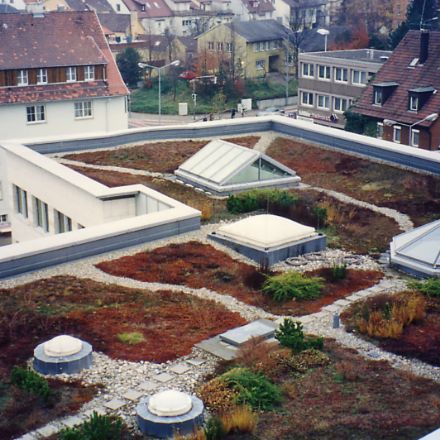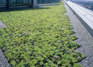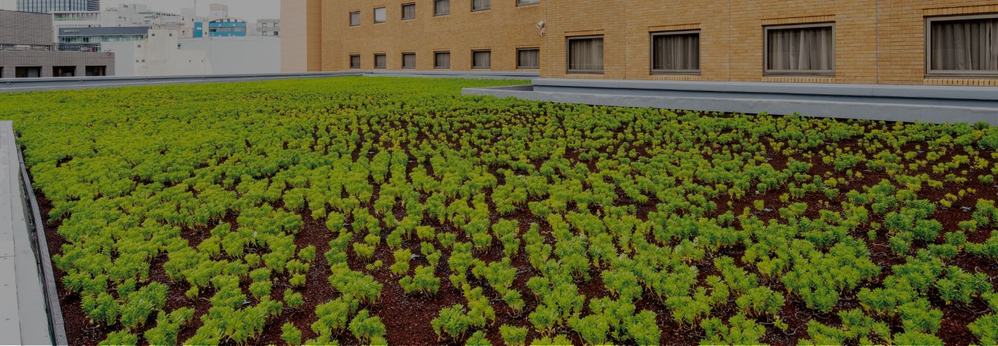 1998年 環境問題への関心が高まるなか、屋上に緑を普及するため田島ルーフィングは省管理型の薄層緑化「G-WAVE エコム」を発表しました。薄く、軽く、手間をかけない屋上緑化を、をコンセプトに、環境先進国ドイツで普及していた人工軽量土壌と、茎や葉に多量の水分を有している多肉植物“セダム”を組合せたシステムです。