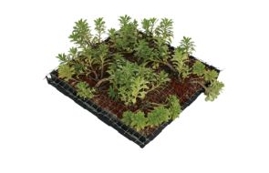 常緑キリンソウは、暑さ・寒さ・乾燥・過湿に強く蒸散による冷却効果も期待できる環境緑化用植物です。積雪地においても生息可能で、従来のキリンソウと違って、冬に一斉に葉を落としません。