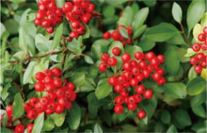 刈り込みに強く生垣向き。秋から冬に赤い実を付ける。